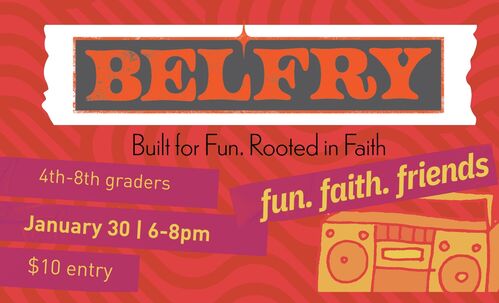 Belfry is a fun night for 4th - 8th graders filled with a music, pizza, games, dancing and making friends, all supervised by background checked adults in a cellphone-free zone.