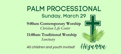 Help us celebrate Palm Sunday with a joyful Palm Processional as we remember Jesus’ triumphant entry into Jerusalem. We will also share a special song in both worship services, "Sing Hosanna!"
